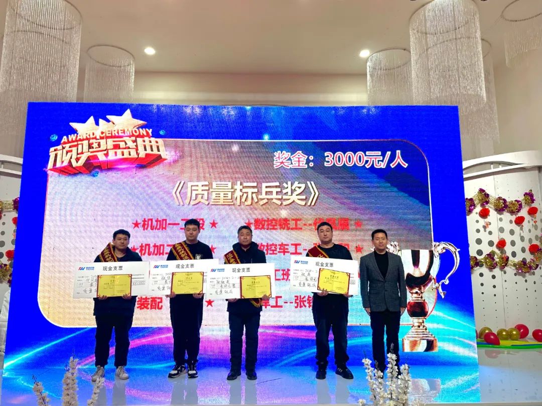 聚焦榮耀加冕,見證榜樣力量。晚會開始前,公司對2023-2024年度進步青年、優(yōu)秀員工、質(zhì)量標(biāo)兵以及首屆功勛員工進行表彰,感謝他們?yōu)閷崿F(xiàn)公司高質(zhì)量發(fā)展做出的積極貢獻。一本本榮譽證書不僅是對他們工作的肯定,更是對泰威人實干精神的傳承和弘揚。通過樹立先進典型,發(fā)揚榜樣精神,進一步增強了全體泰威人的凝聚力和競爭力。頒獎結(jié)束后,公司總經(jīng)理徐剛先生發(fā)表新年致辭,展望2024年公司發(fā)展前景。