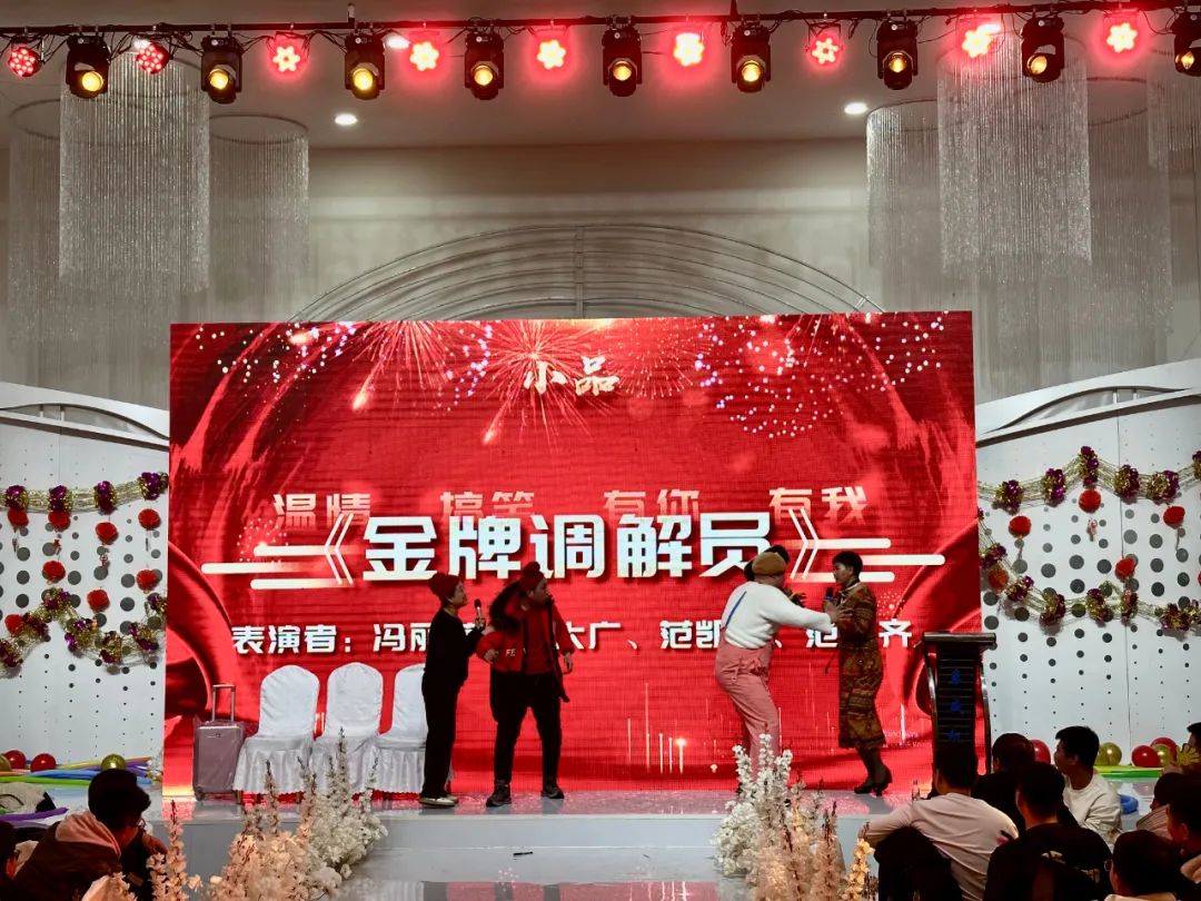 薈萃星光,觥籌熠熠,隨著頒獎典禮的結(jié)束,晚會在瀟灑的開場舞《驍》中正式拉開帷幕,隨后,公司各部門工作人員為大家?guī)砹宋乃囇莩?,歌曲演唱《笨小孩》、《海芋戀》、《著魔》,黑管獨奏《上海灘》,舞蹈表演《科目三》、《桃花朵朵開》,小品節(jié)目《四大才子招親》、《金牌調(diào)解員》,大合唱《壯志在我胸》,一段段精彩紛呈的節(jié)目收獲了臺下觀眾源源不斷的掌聲與歡呼聲,展現(xiàn)了泰威人蓬勃向上的青春風(fēng)采。其中,小品《金牌調(diào)解員》的演員們,憑借著精湛、搞笑的演技,得到了全場觀眾們的認(rèn)可,小品被評為全場最佳節(jié)目。